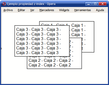 A seguinte imaxe mostra un exemplo de uso da propiedade z-index:
